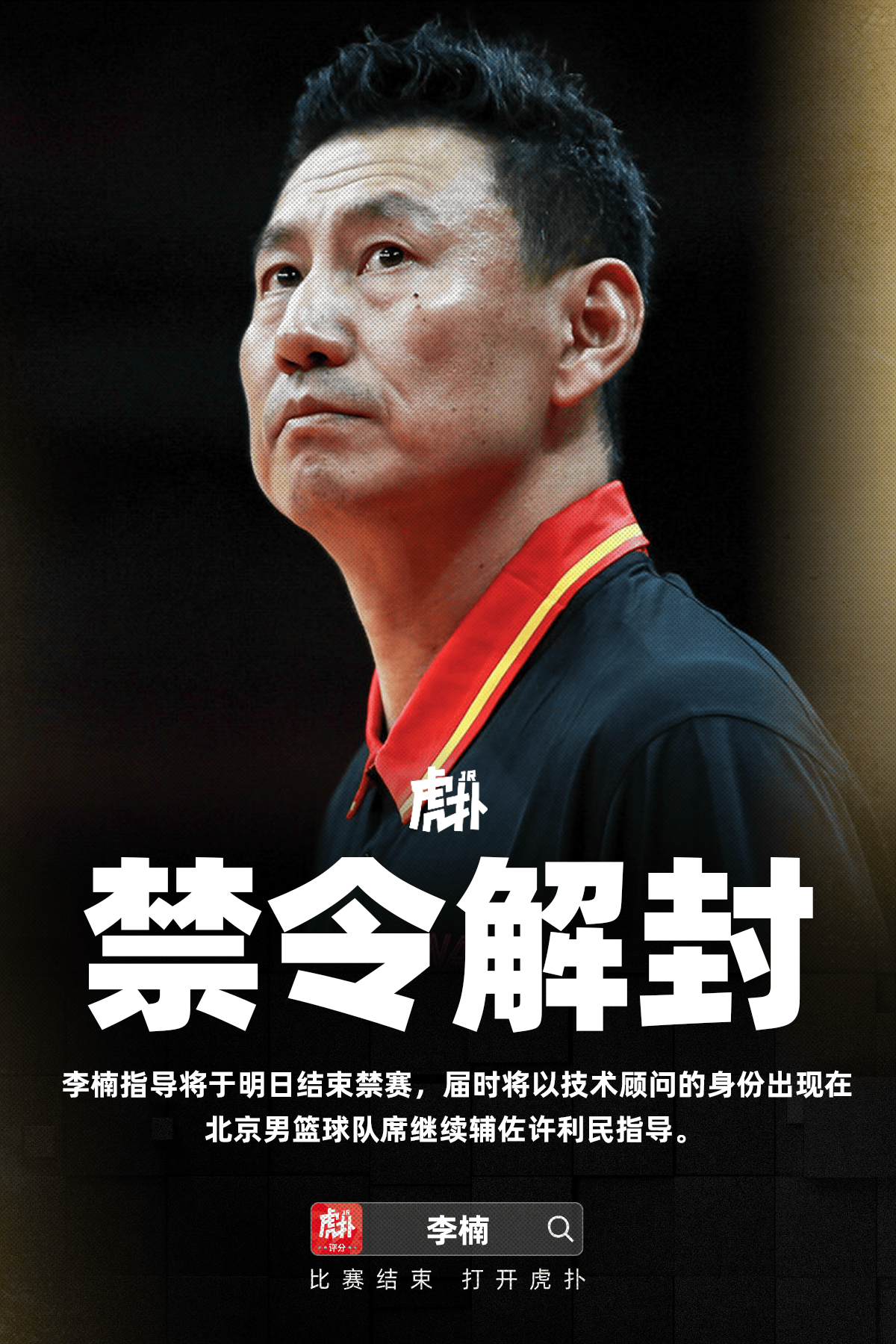 [流言板]李楠明日结束三年禁赛,作为技术顾问现身球队席辅佐许利民